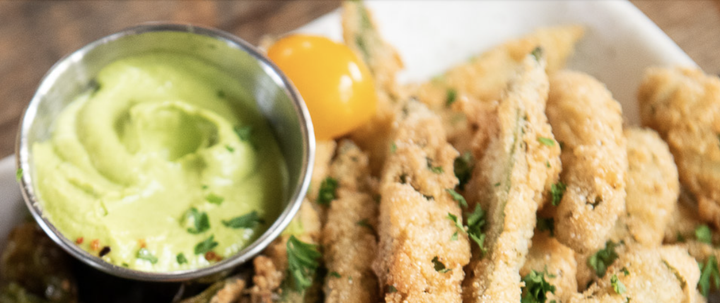 fried okra, spicy dipping sauce