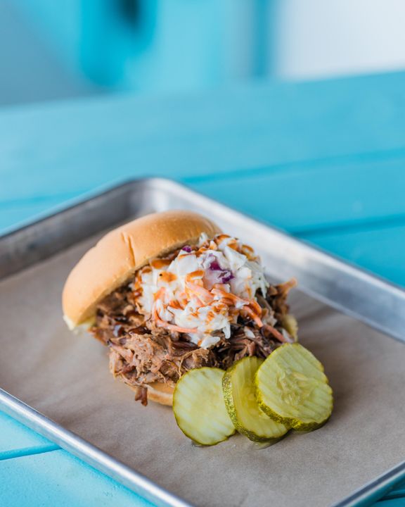 Hand pulled pork topped with our Coastal Slaw and a drizzle of sweet bbq sauce, served with one side.