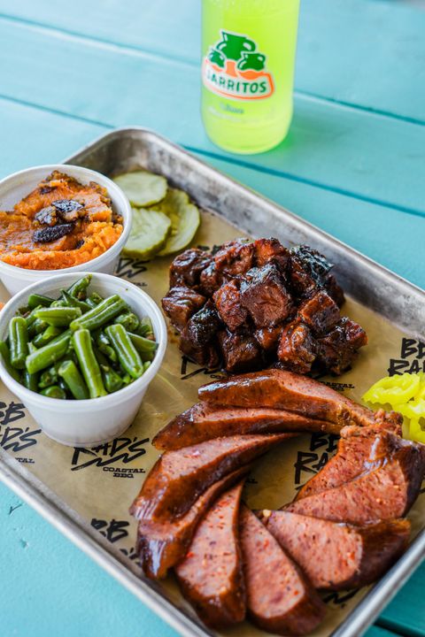 One Flounder filets, Half dozen Shrimp and a quarter pound of beef brisket, served with 2 sides