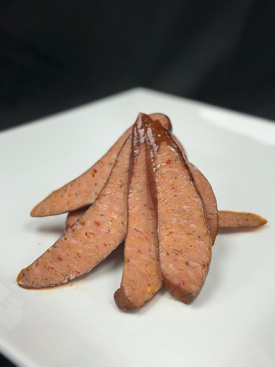 Smoked sausage with a kick on a 4 inch Martin's potato bun. (Spicy)