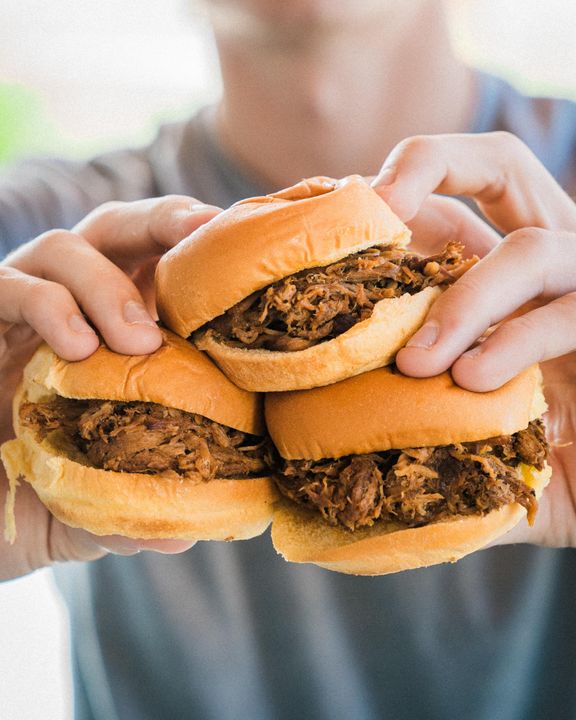Your choice of pulled pork, smoked turkey, smoked brisket, or burnt ends on 3 slider buns. Served with one side.
