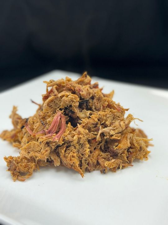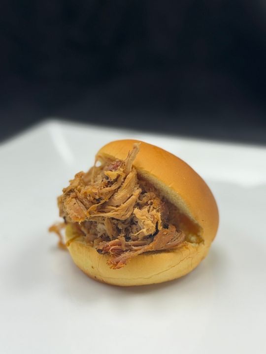 Our slow smoked pork butt, hand pulled on a 4 inch Martin's potato bun.