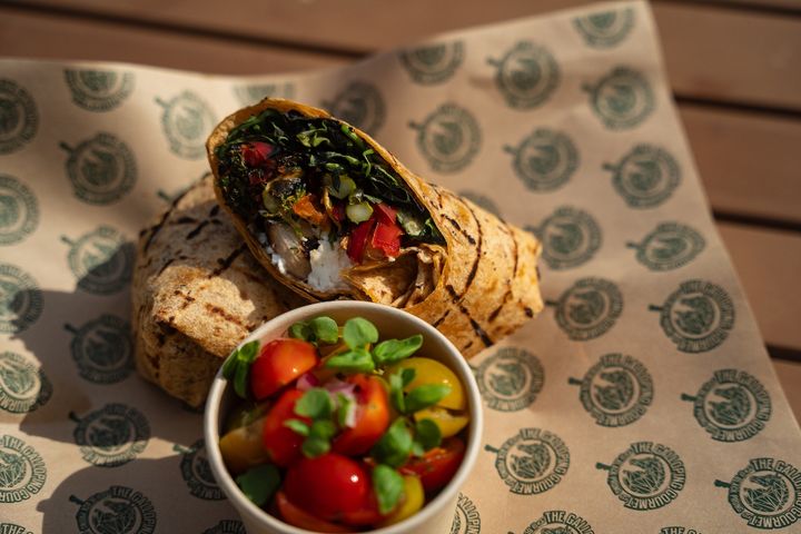 Fresh spinach, wilted swiss, caramelized onions, heirloom cherry tomatoes, herb aioli