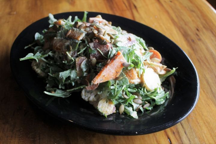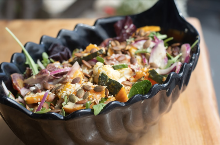 -V, GF- Arugula, with chilled pre-roasted carrots, cauliflower, kabocha squash, butternut squash, yam and zucchini, pumpkin seeds, and a creamy tahini dressing. *Chanterelles recommended*