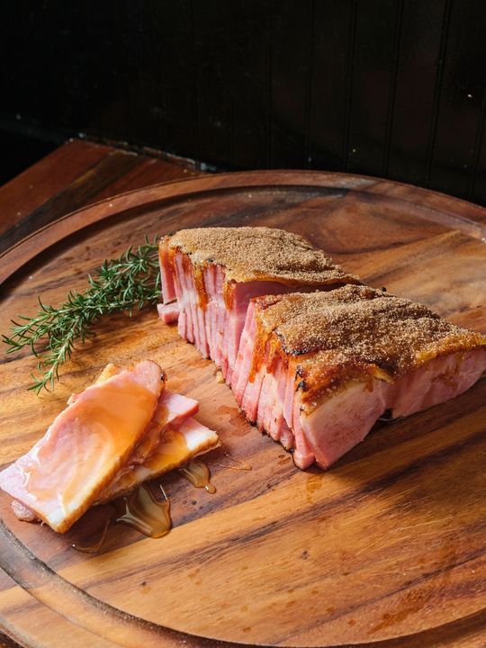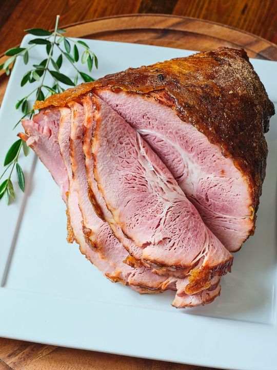 Our fully cooked hams are hickory smoked, spiral sliced & glazed with our thick honey & spice glaze in store.