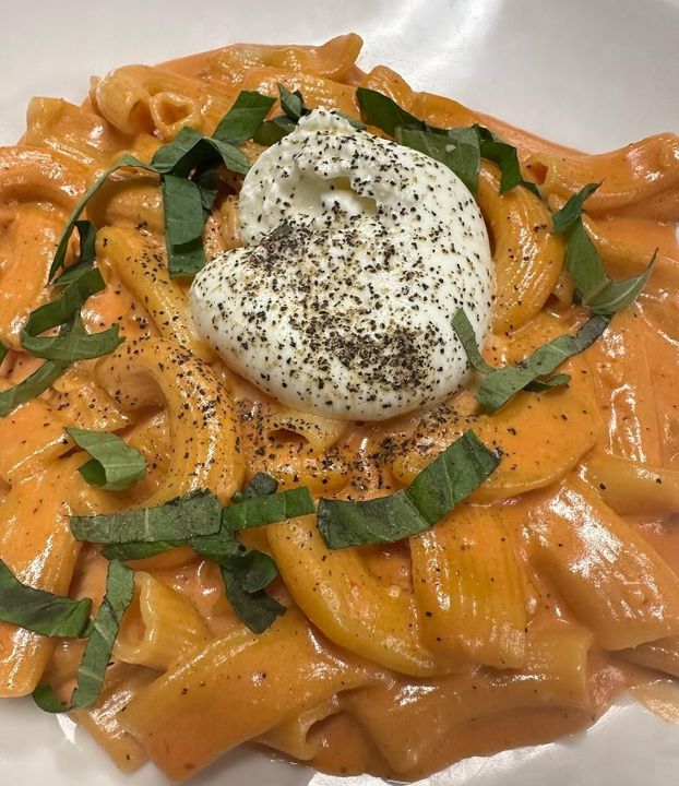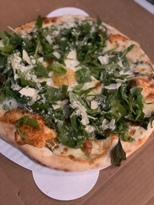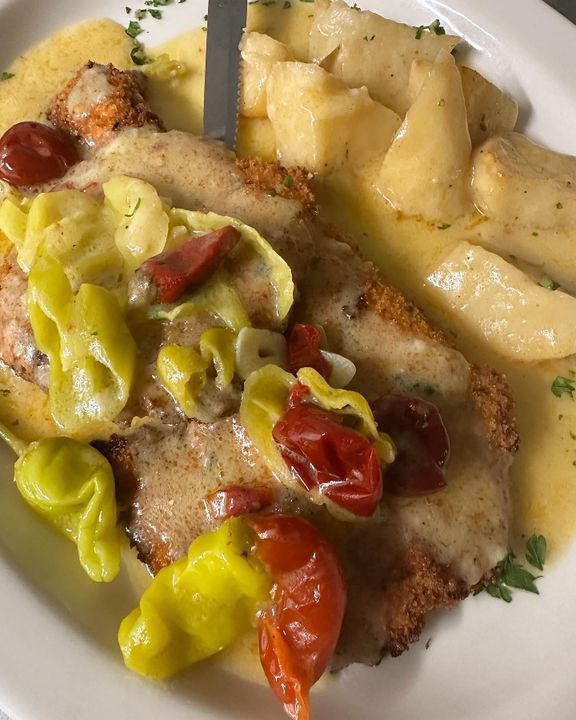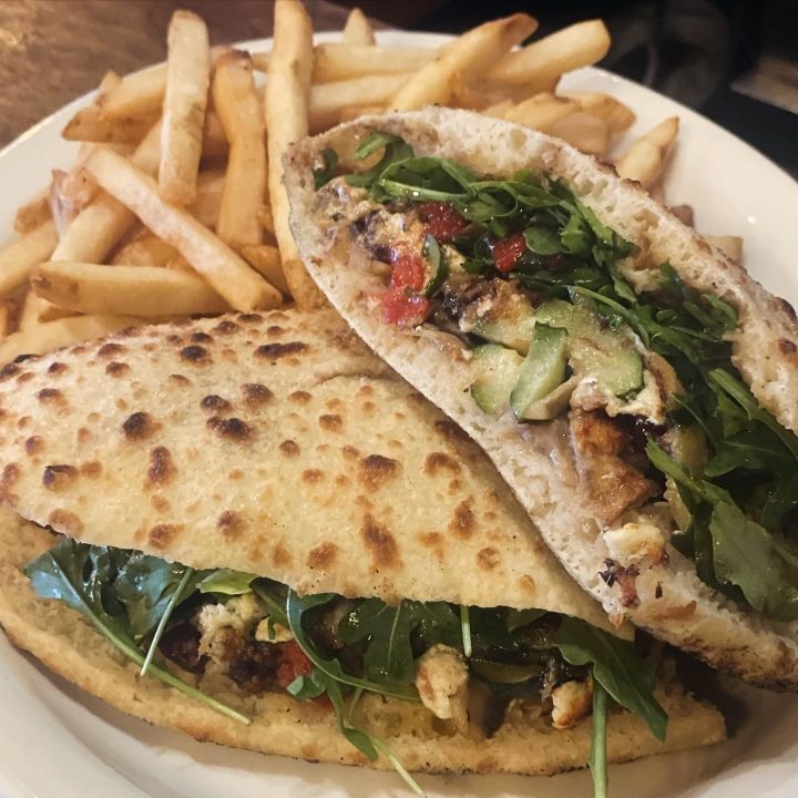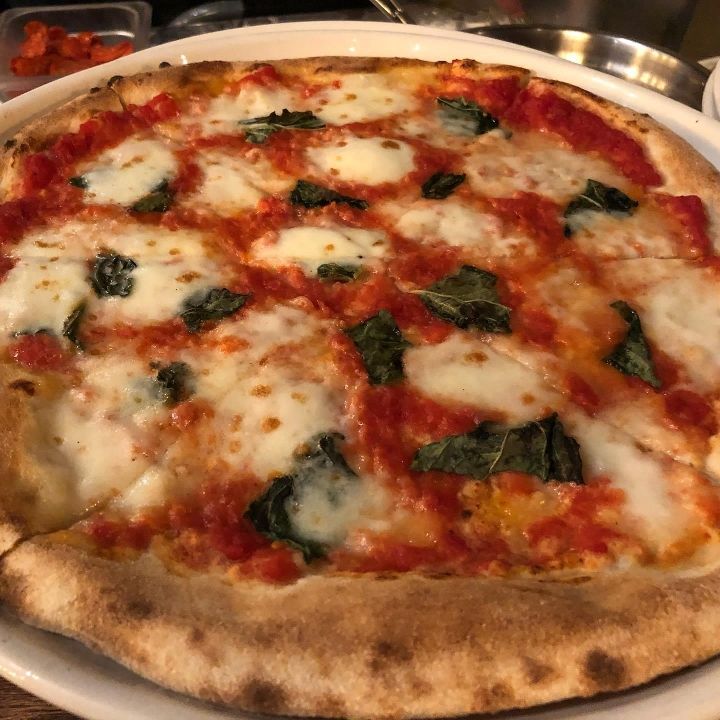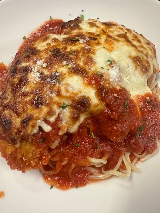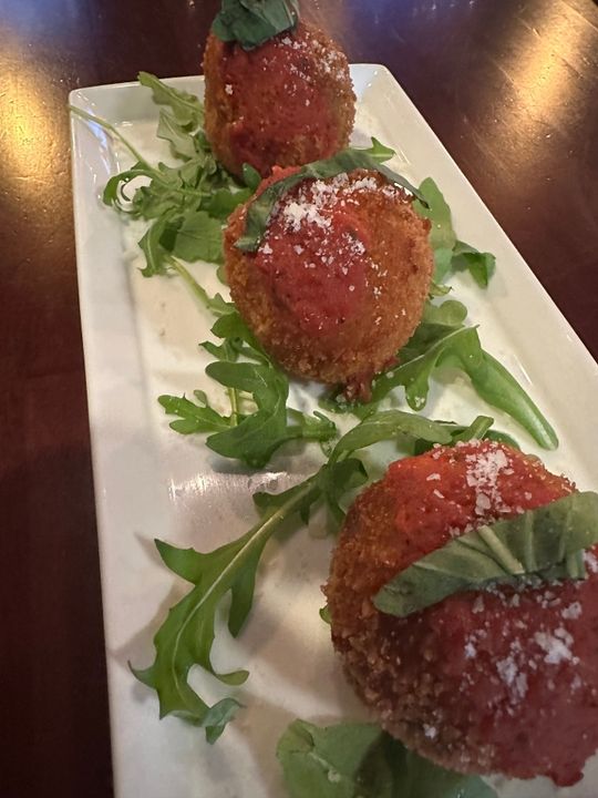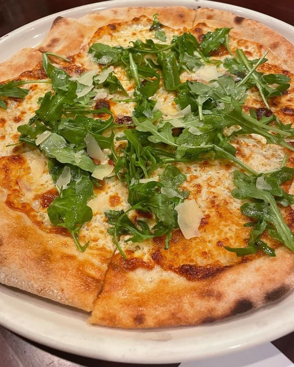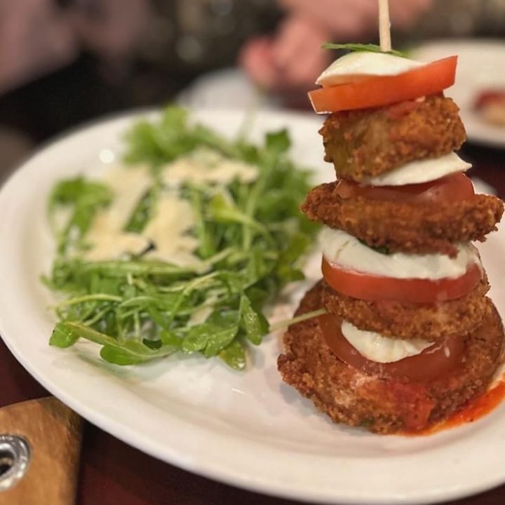 Fried eggplant rounds, fresh mozzarella, marinara, basil, roma tomatoes, arugula