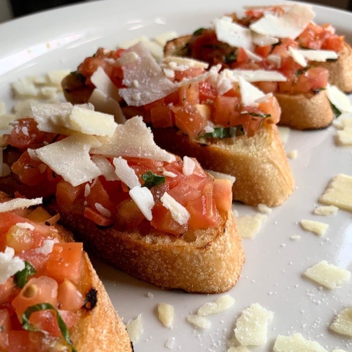 Diced tomato, shaved parmesan, basil, balsamic vinaigrette, toast points