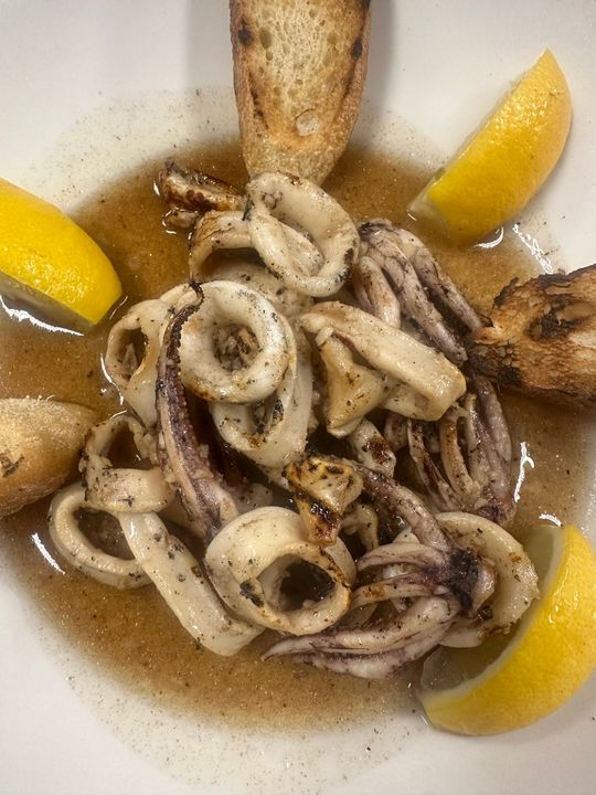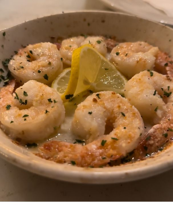 Wood fired shrimp w/ garlic, red pepper, lemon
