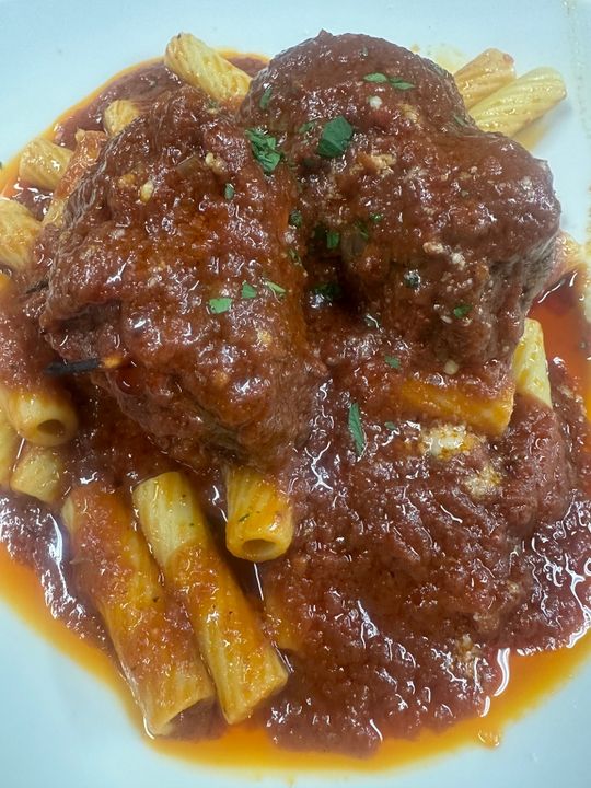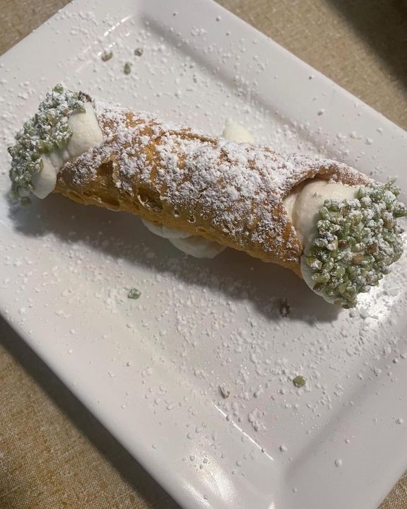 10 homemade ricotta filing stuffed in a canola shell, dusted w/ pistachio nuts & confectioners sugar