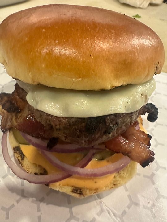 Maple bacon, provolone, red pepper aioli, pickle, red onion, fries