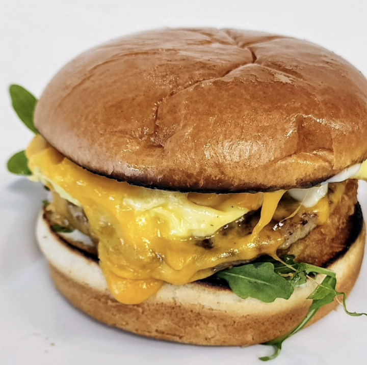 Featuring a Boar’s Head sausage patty, fluffy scrambled eggs, melted American yellow cheddar cheese, fresh organic arugula topped with our special house-made garlic aioli on a buttery brioche bun.