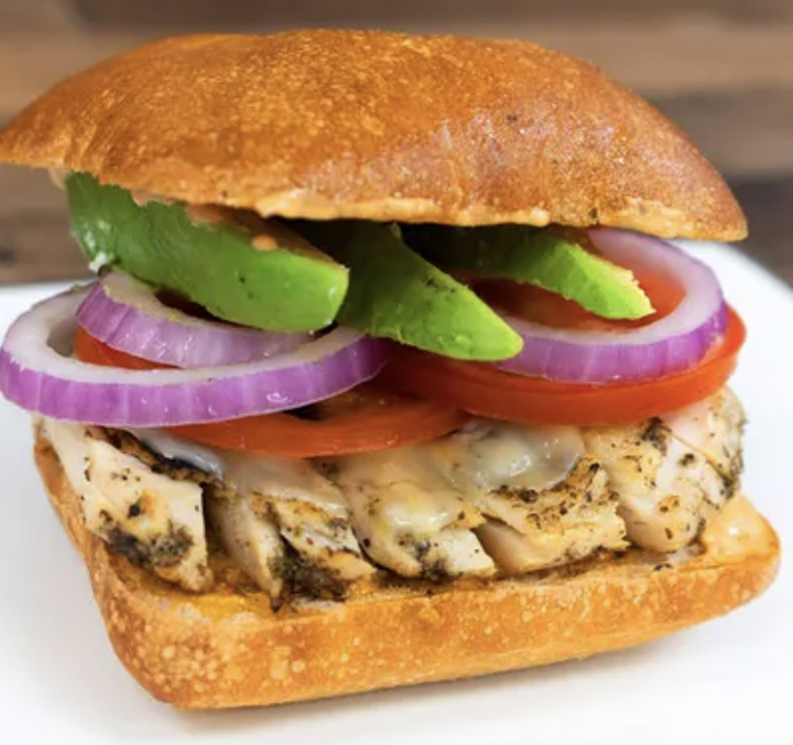 Ciabatta bread, chipotle aioli, chicken, provolone cheese, avocadoe, tomatoes, red onions, spring mix