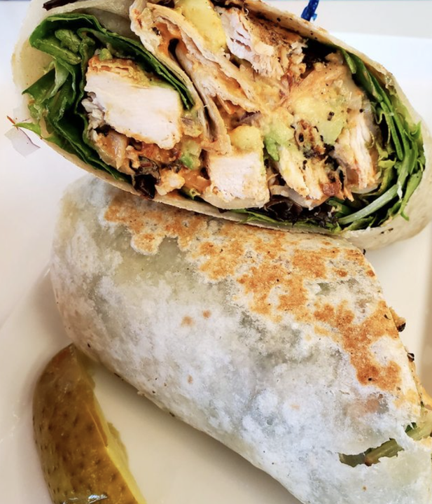 Flour tortilla, chipotle sauce, charbroiled chicken breast, provolone cheese, red onions, avocado, spring mix.