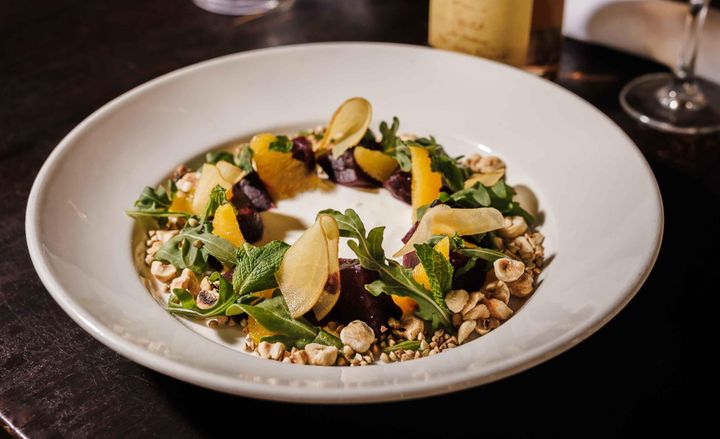 hazelnuts, mint, whipped feta, kasha, citrus-honey vinaigrette