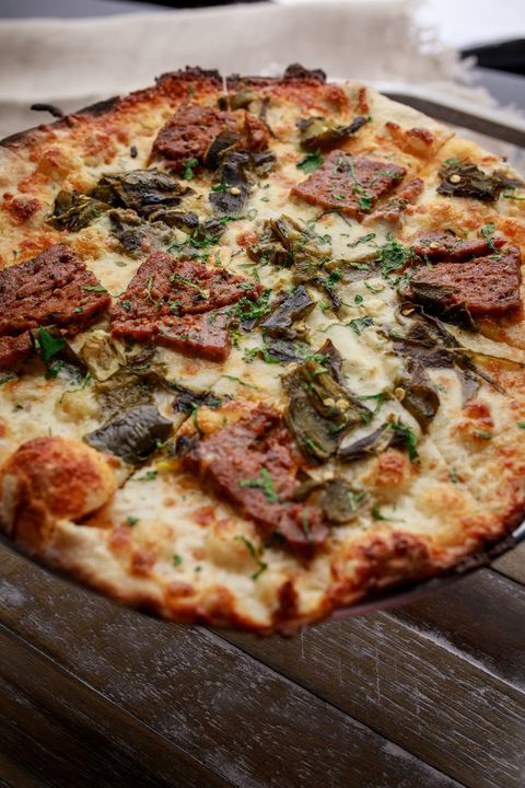 Cauliflower Steak, Mozzarella, Cheddar, Shoestring Sweet Potatoes, Pumpkin Seed Pesto, Sourdough