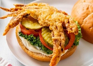 Santoni's Signature Crab Cake with Lettuce, Tomato, and your choice of sauce on a toasted Kaiser Roll