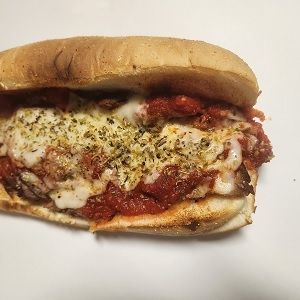 Crispy white meat chicken tenders topped with shredded mozzarella cheese and marinara sauce on a sub roll and baked to perfection.