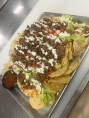 Cheddar cheese, pico de gallo, shredded lettuce, cilantro lime sour cream, fire-roasted salsa