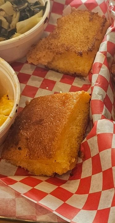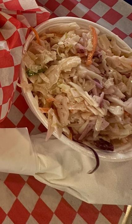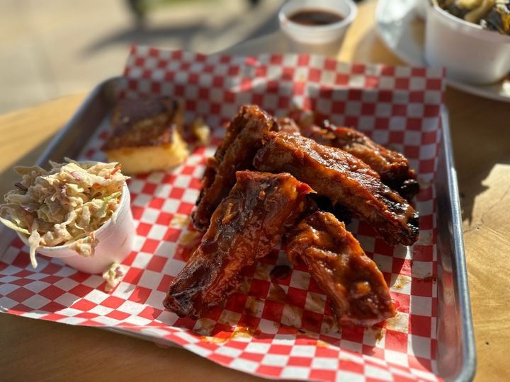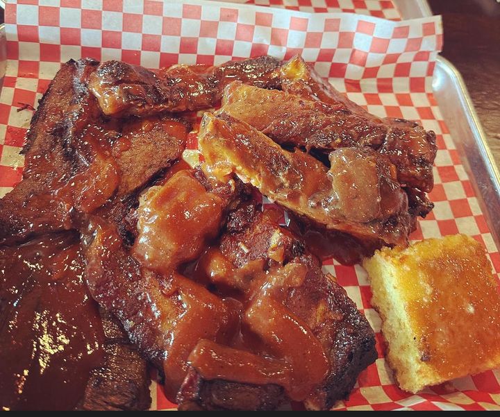 Flavorful, tender, juicy, and finger-licking delicious smoked pork ribs. Ribs are tossed in our house BBQ sauce and are served with coleslaw and cornbread.