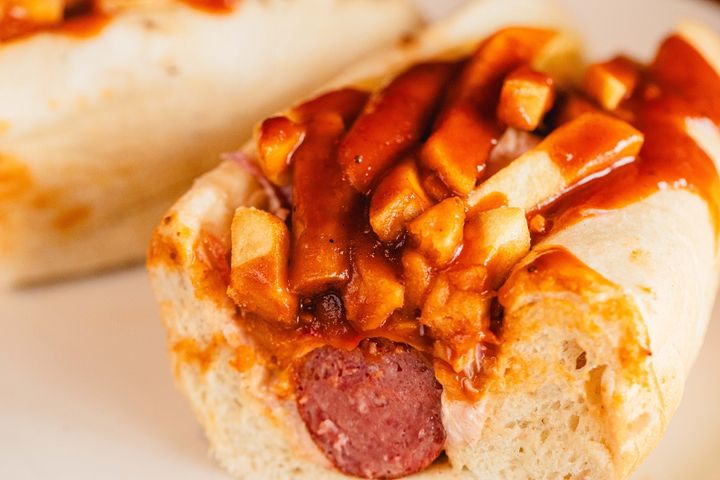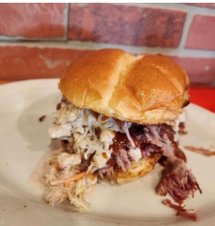 This hearty sausage is smoked and made with a blend of delicious spices, placed in a hoagie bun, covered with pulled pork, coleslaw, BBQ sauce, topped with fries.