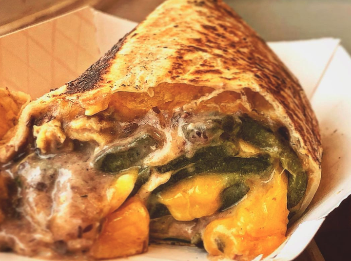 Choice of meat (Beef or Pork), eggs, corn tortilla, shredded cheese, avocado, salsa, pico, pickled veggies