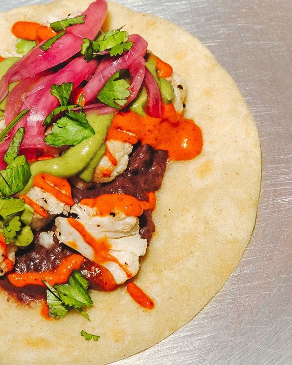 (Spicy) Cabbage, Cauliflower, Almonds, Avocado, Almond Arbol, Avo Crema, Cilantro, Pickled Red Onions, Sesame Seeds.
