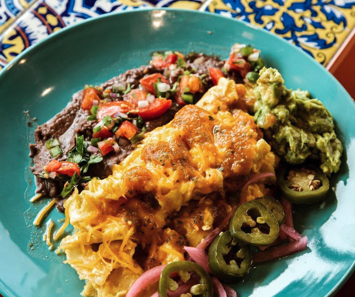 (Vegetarian) Avocado, eggs, cheese, black beans, salsa roja, pico
