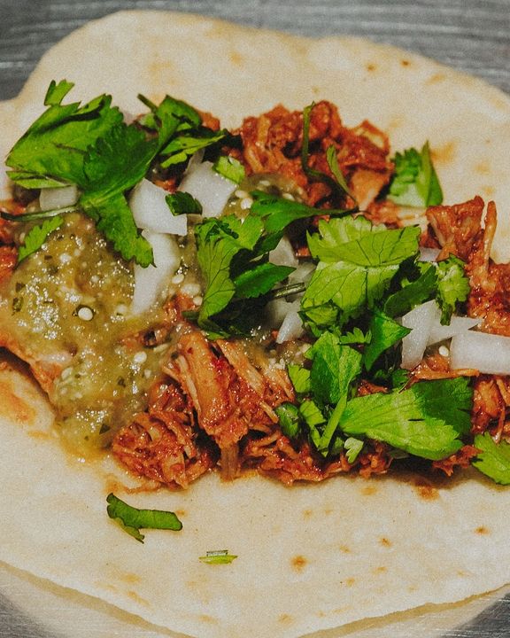 Shredded pork, salsa verde, onions, cilantro, served on Corn Tortilla.