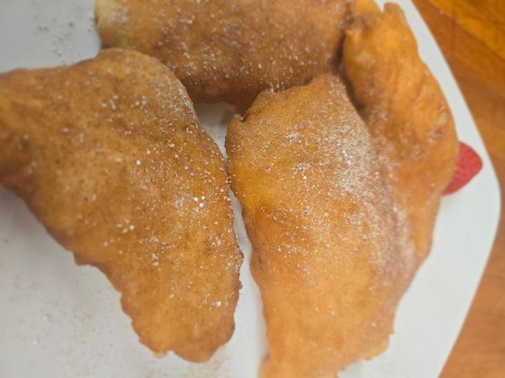 Fried dough-boy sprinkled with cinnamon and confectionary sugar. Choice of maple syrup, chocolate syrup and whipped cream