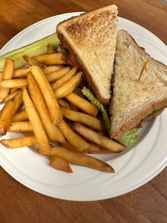 Full sandwich with Fresh Sliced Turkey, Ham or White Meat Tuna Salad with choice of cheese and type of sliced bread. Sandwiches include lettuce, tomato, onion, pickle & choice of a side- Potato Chips, Potato Salad or French Fries