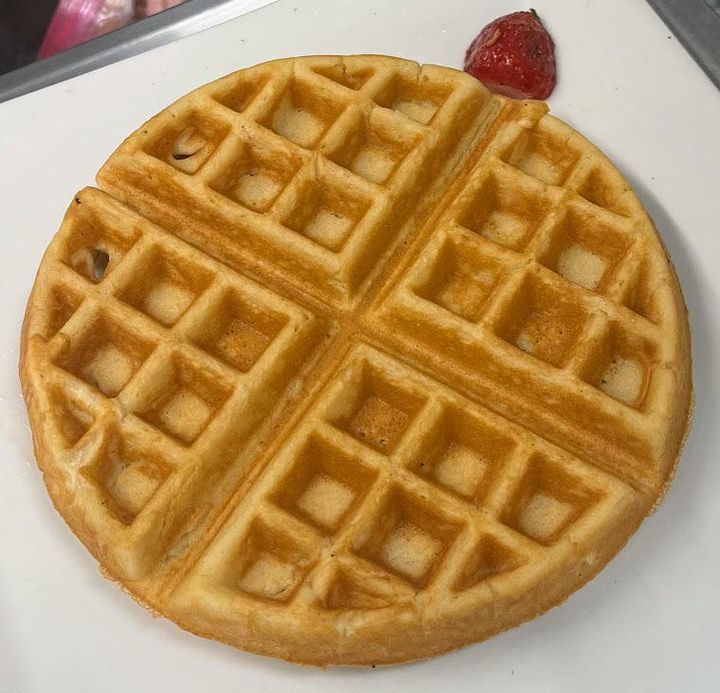 House-made Belgian waffle. Choice of fresh Blueberry, fresh Strawberry, Banana, or Chocolate Chips