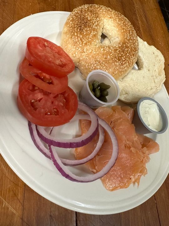 Choice of bagel with lox, cream cheese, capers, onions & tomatoes