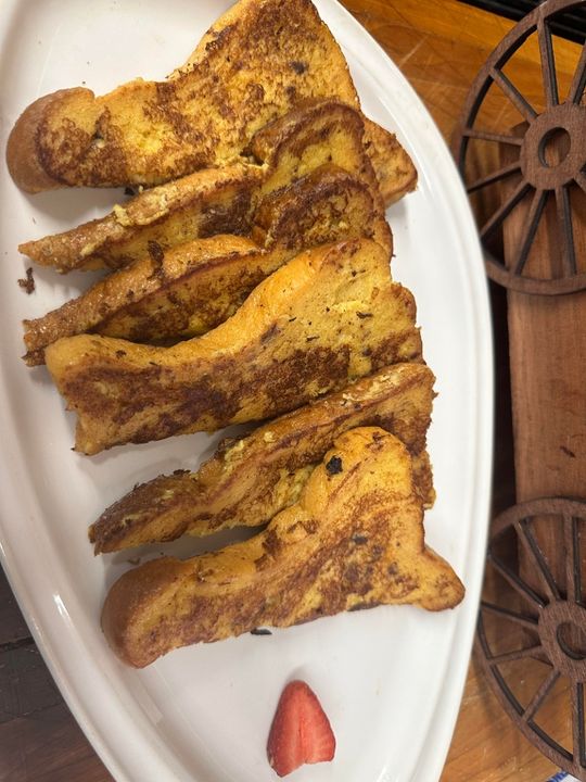 Three slices of Challah bread hand-dipped in our cinnamon egg batter. Prepared Plain, or choice of fresh Blueberry, fresh Strawberry, Banana, or Chocolate Chips