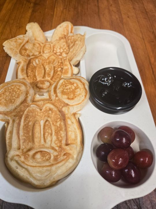 2 eggs any style with 2 mini pancakes, home fries, bacon and toast