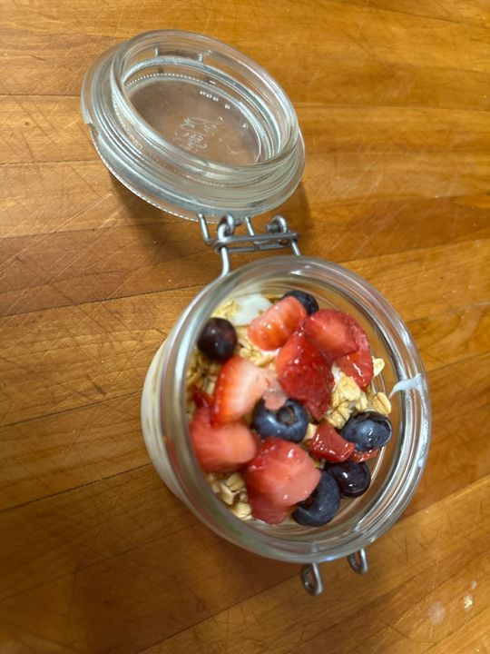 One large fluffy pancake with choice of (blueberries, chocolate chips, banana or strawberries)